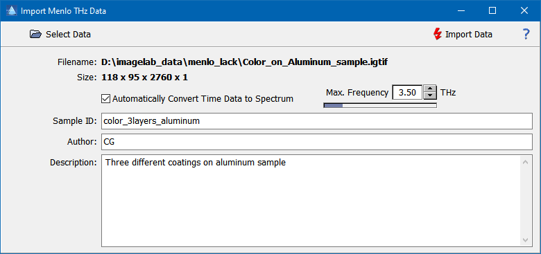 - Click the command "File > Import Data > Menlo Systems THz Data"
