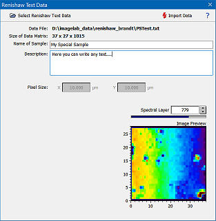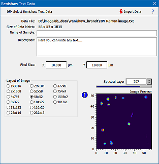 - Click the button "Select Renishaw Text Data" and select the data file to be imported.