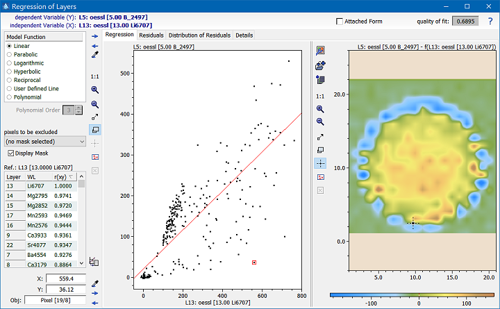 Sometimes the question arises whether two layers are correlated to each other. While simply calculating the correlation coefficient between layers may lead to wrong conclusions (e.g. due to outliers) plotting the corresponding layers against each other immediately uncovers the relationship, and will not only show the correlation but also the data structure of the two related layers. Furthermore, plotting the residuals of a regression model may result in an image which displays specific information otherwise not seen.
